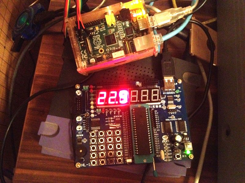 二关于数据采集方面,前一段买了一个51单片机,里面刚好带了一个温度传感器。这样就解决了数据采集和呈现的部分。另外51上带了led发光管,同时可以将温度显示出来。