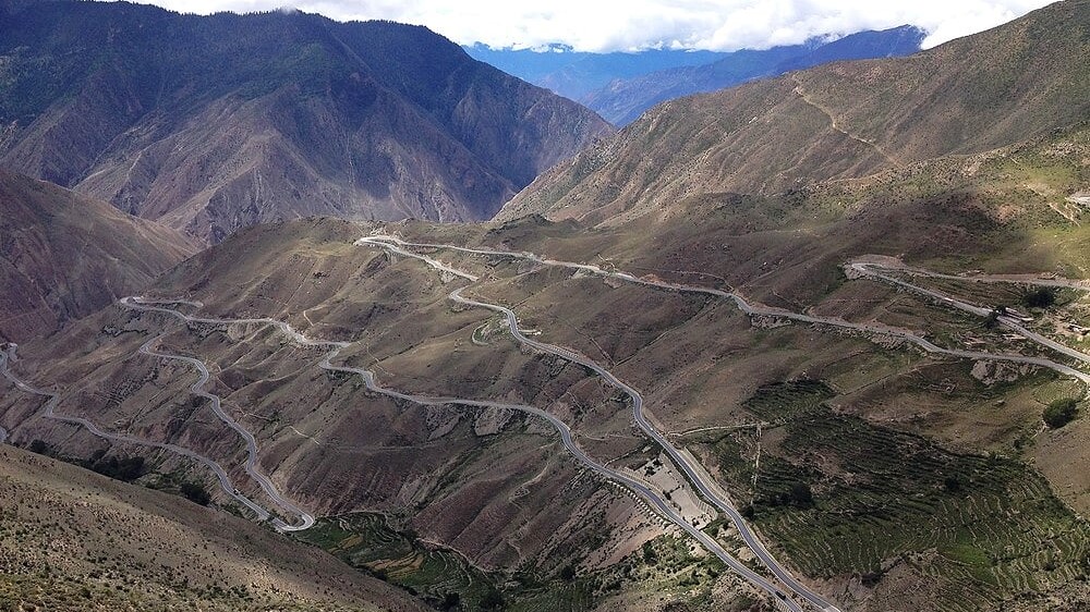 攀升500多米就到达了4658米的业拉山垭口,从这里下去就是著名的怒江七十二拐。从4658米的垭口一路下坡30多公里,一直到海拔2740米的怒江大桥,累计下降近2000米。