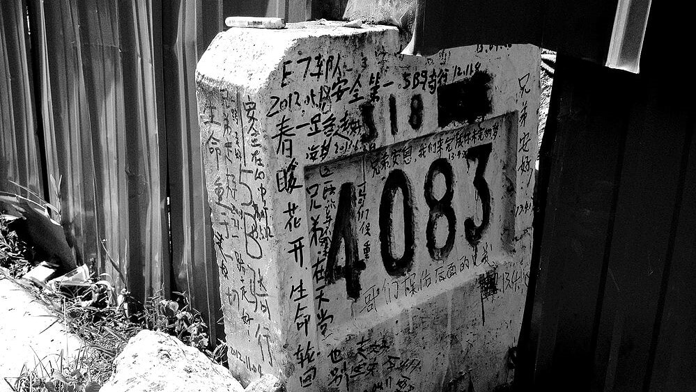 到达4081和4083里程碑,这里曾经有两位骑行的兄弟分别在09和10年因速度过快而殒命,里程碑就成了一座墓碑,上面铺着哈达,有后来者的签名和敬上的香烟。在碑前驻足,山风涌起,吹着不远处的经幡呼啦作响,不免心生叹惋。
